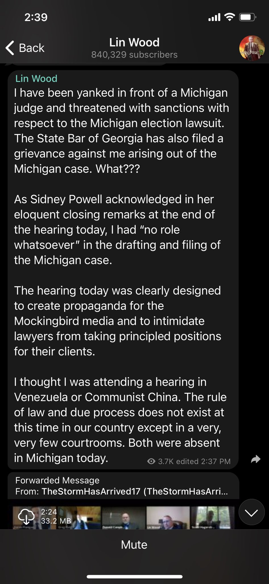 Dave Thomas On Twitter Lin Wood On Telegram Said The Six Hour Hearing He Sat Through Today Over Whether He Should Be Sanctioned For His Now Disputed Efforts To Overturn Michigan S Election Results